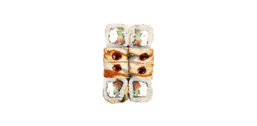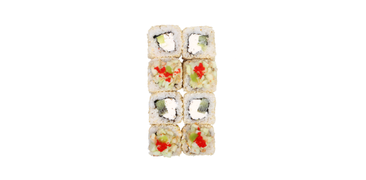 Рис, нори, сыр сливочный, огурец, тунец Гравлакс.