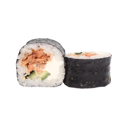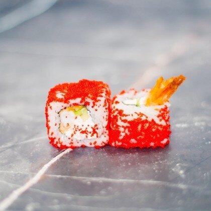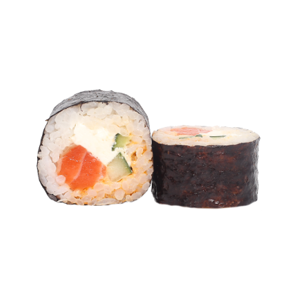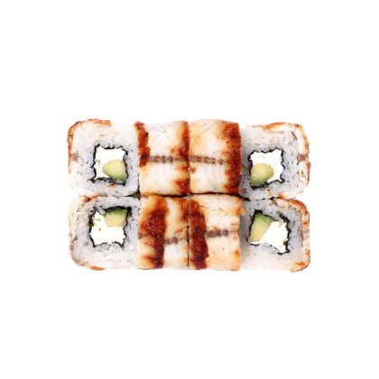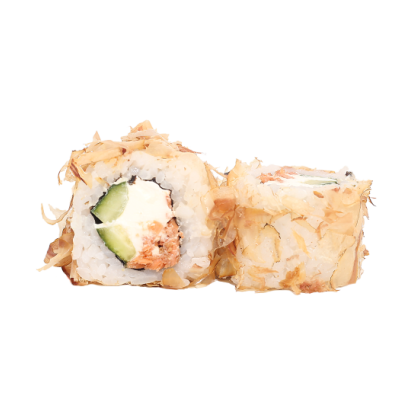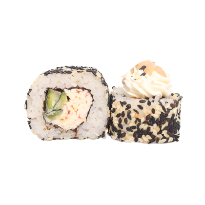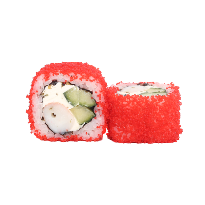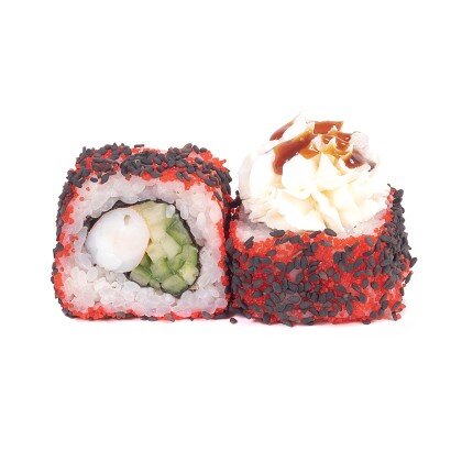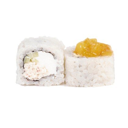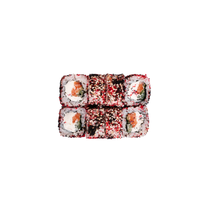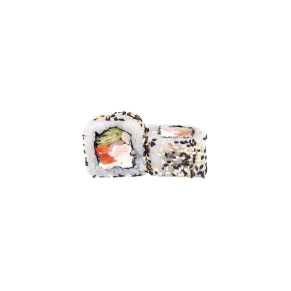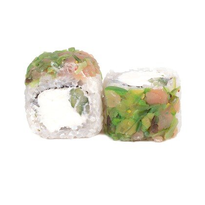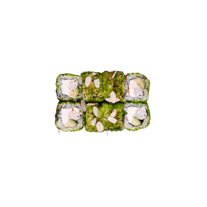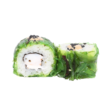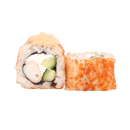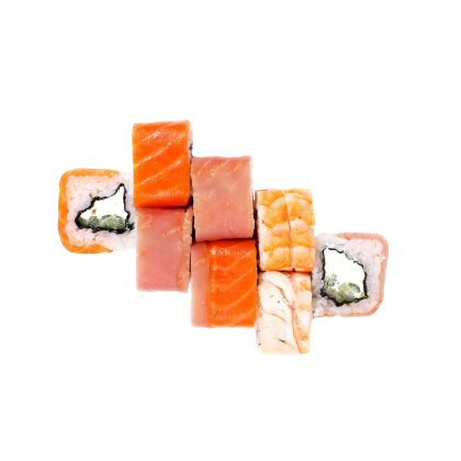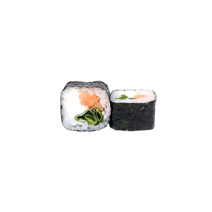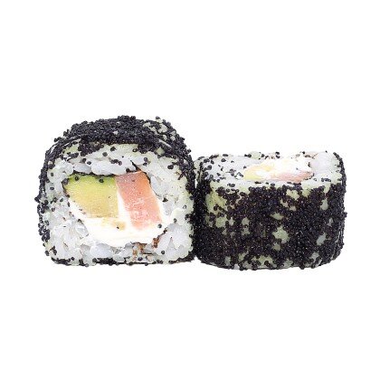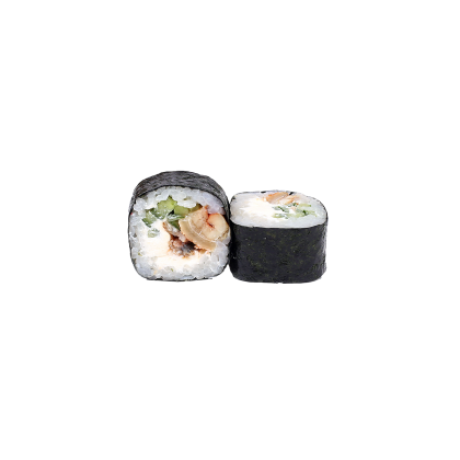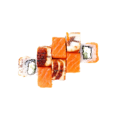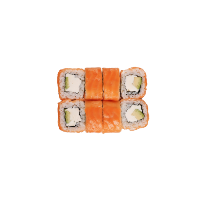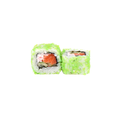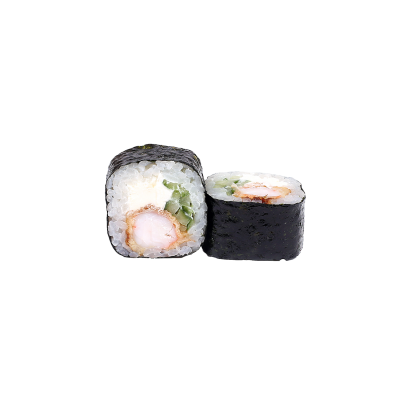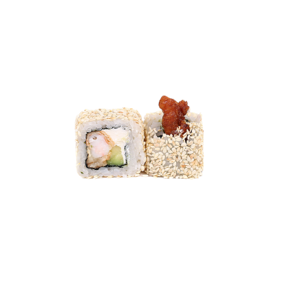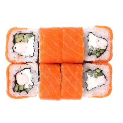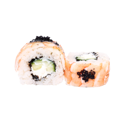 Рис, нори, лосось, креветка тигровая, авокадо.